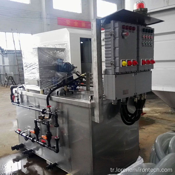 Bu otomatik kimyasal besleme makinesi, seyreltme sürecini gerçekleştirmek için üç yuvayı bir araya getirdi, homojenleştirme, olgunlaşma ve depolamayı destekleyici ajitatörlerin işlevi altında, otomatik besleme motorları . Hammaddesi toz veya sıvı olabilir. Parçacıkların (blok) oluşumunu azaltabilir ; Kuru toz ve su girişinin yanı sıra sıvı yoğunluğu, spesifik gereksinime göre ayarlanabilir