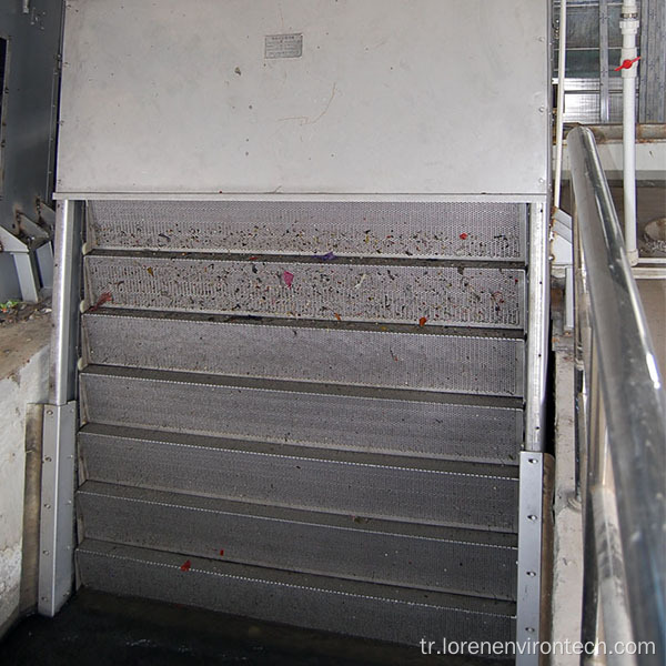 Bir döner delikli plaka ızgarası Atık su arıtma için sürekli bir katı sıvı ayırma ekipmanıdır , eğimli bir çerçeve tarzı raf, çerçeve tipi bir rafa monte edilmiş basamaklı bir döner sistemi, bir fırçalama cihazı, bir yıkama cihazı içerir. Basamaklı eğik sking sistemi , alt raf makarından, raf üst kısım ve ana şaft zincir dişlisi arasına monte edilen redüktör ve birbirine bağlı bükülme biçimlendirilmiş trapezoidal parçalardan oluşan orta zincir makara cihazından oluşur .