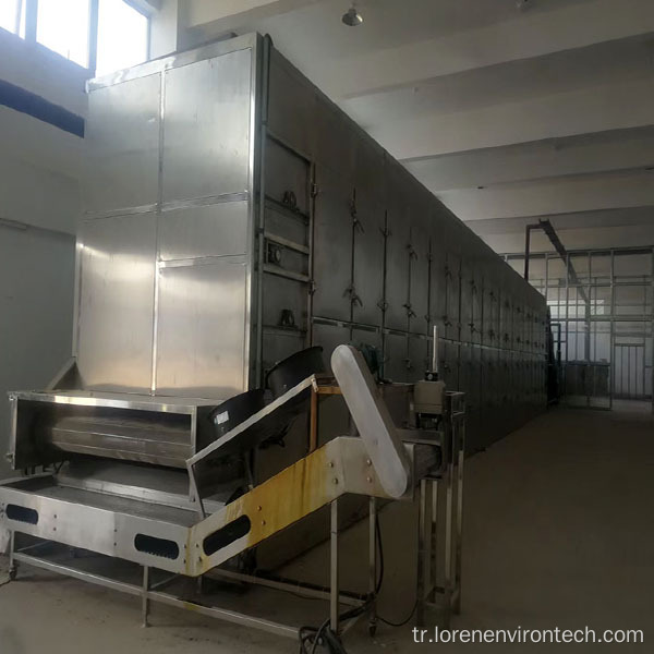 Dolaylı ısıtma kurutma makinesinin üstünden 70 ~% 85 su içeriği çamuru beslenir. Birkaç kat kurutma makinesi vardır. Her katın kazınma fonksiyonu, en düşük katmanda kurutucu deşarj portu olana kadar çamuru bir sonraki tabakaya hareket ettiriyor. Deşarj bağlantı noktasında geçici depolama için bir depolama torbası veya işlenmiş çamur depolama tankına teslim edilir. Çamur hareketli prosedürü sürdüren çamur , kolları kazıyarak karıştırıyor.